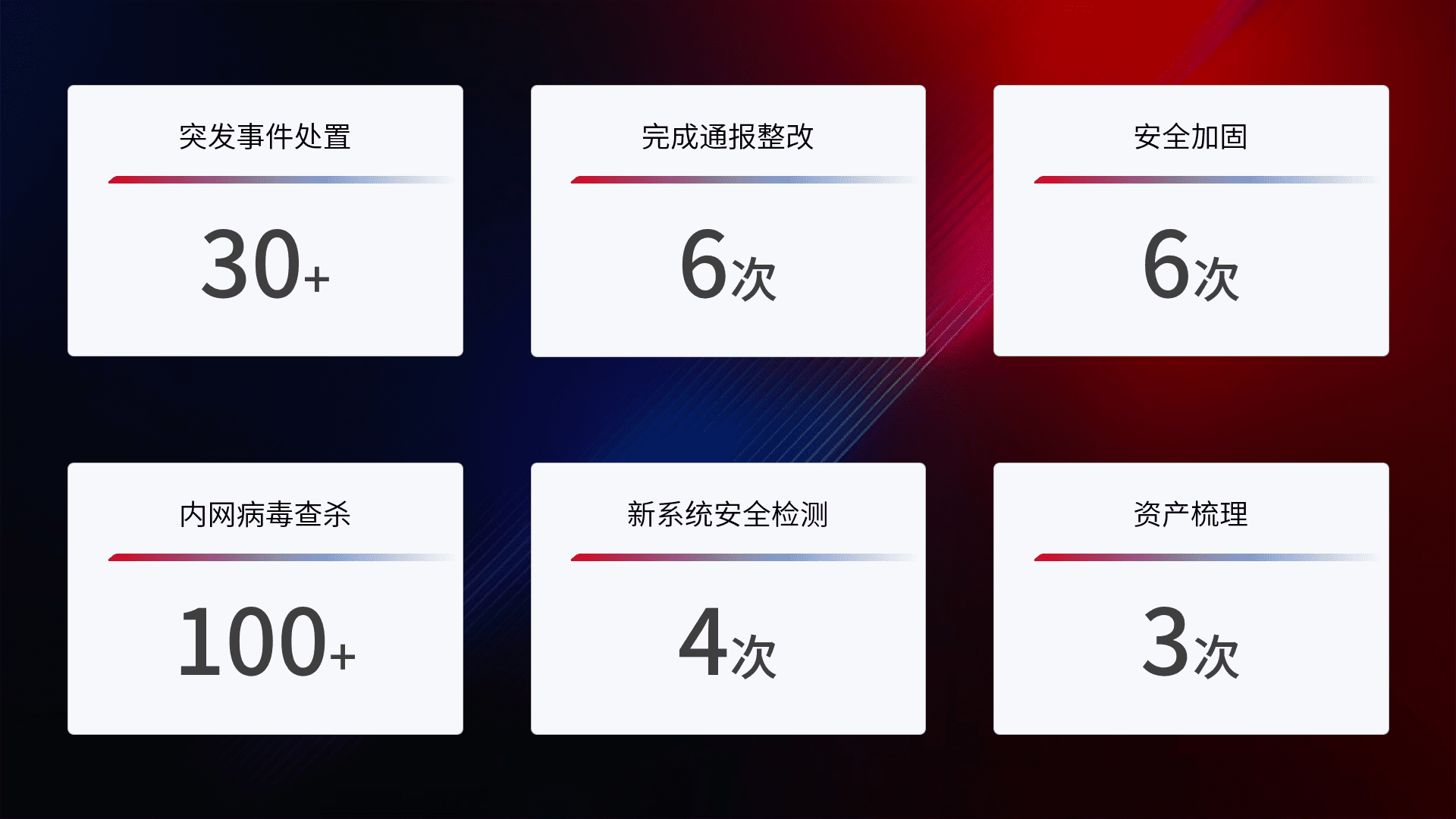 安全水平提升与事件响应:派驻经验丰富的安全工程师,,,提升医院网络安全防护的整体水平;建立突发网络安全事件的处置流程,,提高响应速度和处置能力。。。